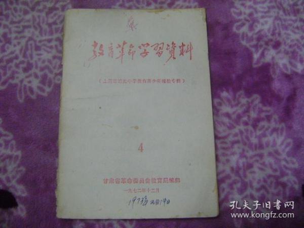 作者 甘肃省革命委员会教育局编印