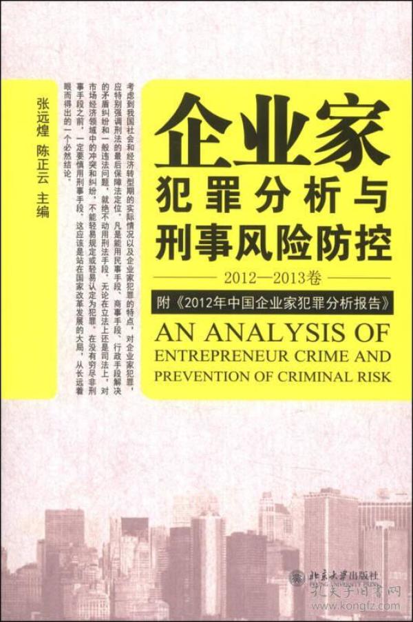 《企业家犯罪透视与刑事风险防控(2012-2013卷)》以国内首份专业性年度研究报告《2012年中国企业家犯罪分析报告》和首届“企业家刑事风险防控与经济发展高端论坛”会议论文集为基础编写而成,旨在全面揭示我国企业家犯罪状况,着力推动企业家刑事风险防控实践,促进企业稳健前行和经济健康发展。  书中以横跨国企和民企的245例典型案例的统计分析为基础,着重对涉案企业家的罪名分布与罪名
