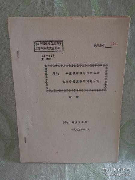 出版社 湖大卫生科 油印本