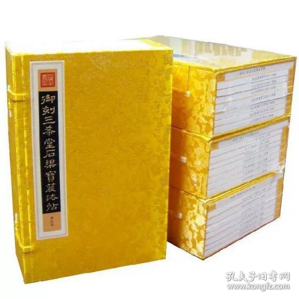 此三希堂藏书隆重推出宣纸线装典藏版,沿袭32册旧制,选用乾隆初拓本,采用特制安徽手工宣纸,原大影印,传统手工线装,黄绫封面、书函。法帖共32册,收集自魏、晋至明末共135位书法大家的340件书法珍品,是中国书法艺术殿堂中的一笔巨大财富。随书附赠“别册”一本,内容为全部作品释文及书家小传。