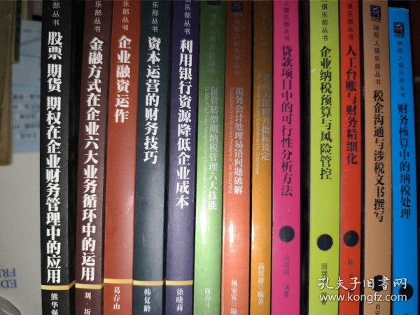 纳税人俱乐部丛书:人工台账与财务精细化、财务核算中的纳税处理、税企沟通与涉税文书撰写、企业纳税预算与风险管控、贷款项目中的可行性分析方法、企业关键财务指标设定、税务会计处理易错问题破解、征管转型期纳税管理六大技能、利用银行资源降低企业成本、资本运营的财务技巧、 企业融资运作、金融方式在企业六大业务循环中的运用、股票七股股权在企业财务管理中的应用 13本合答
