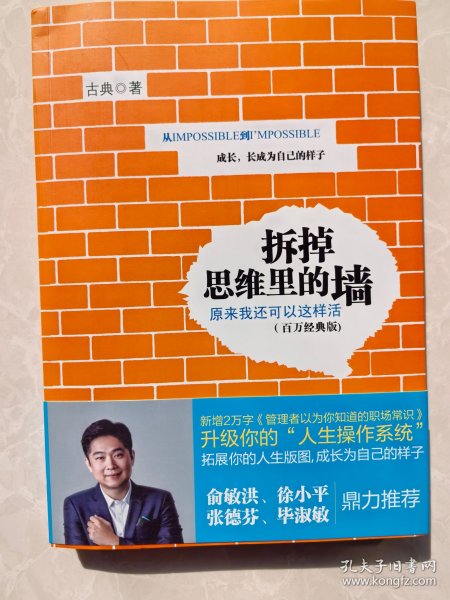 新一代人生设计大师古典倾情打造“人生开窍手册”:心理学+职业规划+人生哲学。你是否缺少安全感?你会经常觉得累吗?结婚一定要买房吗?坚持一定会成功吗?努力一定有结果?只有有钱才能够幸福?老板可以掌控吗?小人物就无法对抗不公平吗?该书讲述了连我们自己也不曾意识到,那些困惑背后,往往藏着一堵堵思维里的墙,阻碍着我们,把我们与美好的生活隔开了。拆掉思维里的那些墙,你就可以获得成功、快乐、自信和幸福.