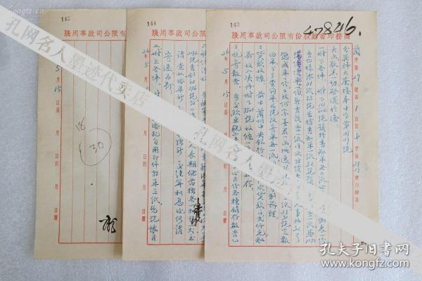 作者 上海文史馆馆员袁惠常旧藏:京剧四大名票之一、诗词家、原山西晋剧院导演 胡苹秋 信札,诗稿二通三张,诗稿二张,复印诗稿4张 共计9张