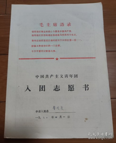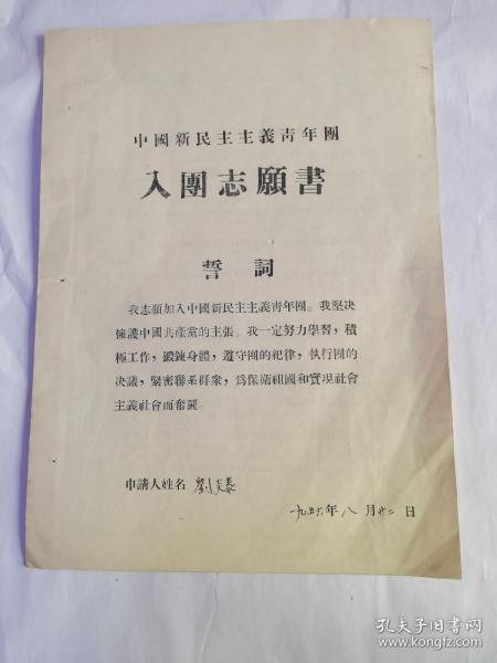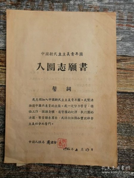 出版社 中国新民主主义青年团入团志愿书