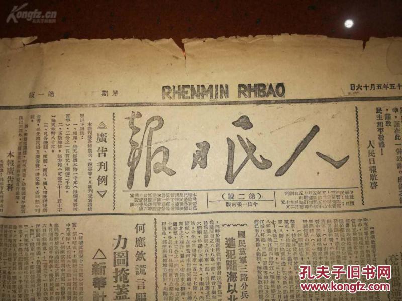 出版社 苏皖冀晋鲁豫各地战云密闭国民党策动全面内战倾两师之众进迫我定远县境兖州伪逆吴化文部2千余出犯被击退。头版
