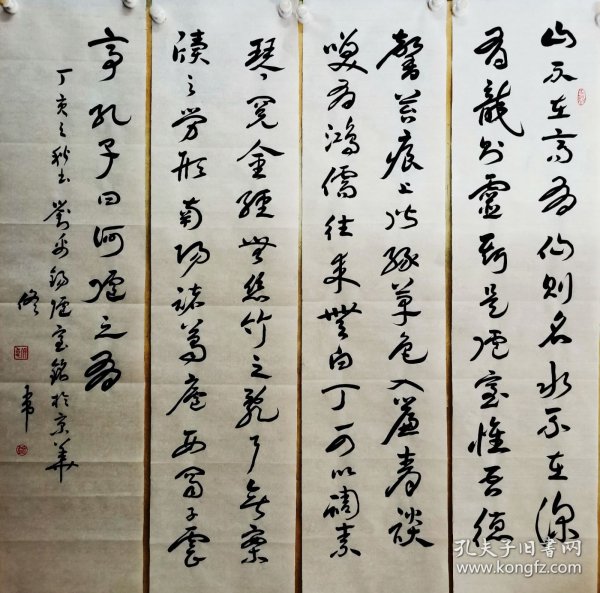 作者 佟韦书法作品, 手写真迹, 佟韦,先后任中国书协党的领导小组组长、秘书长、党组副书记、副主席,现为中国书协顾问  ,中央国家机关分会名誉会长。刘禹锡陋室铭 四尺四条屏