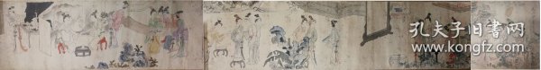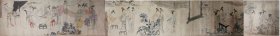 作者 清末佚名老纸本横幅卷轴美人琴棋书画图一组三件(原系同一件作品),27X108cm+27X28cm+27X84cm,总厂200cm,横幅卷轴未裱,落款:“美人琴棋书画图,岩拪(音“移”)堂藏”
