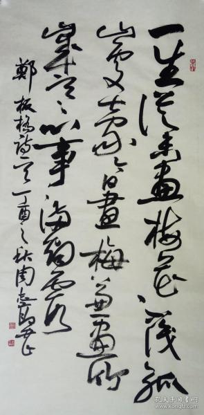 作者 周志高书法作品手写真迹。中国书法家协会第一届、第二届常务理事,第三届理事,中国书法家协会资深评委,上海市文联副主席,上海市书法家协会主席,郑板桥诗一首,有鉴定证书。