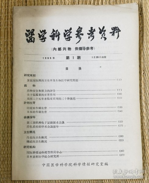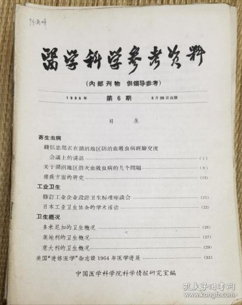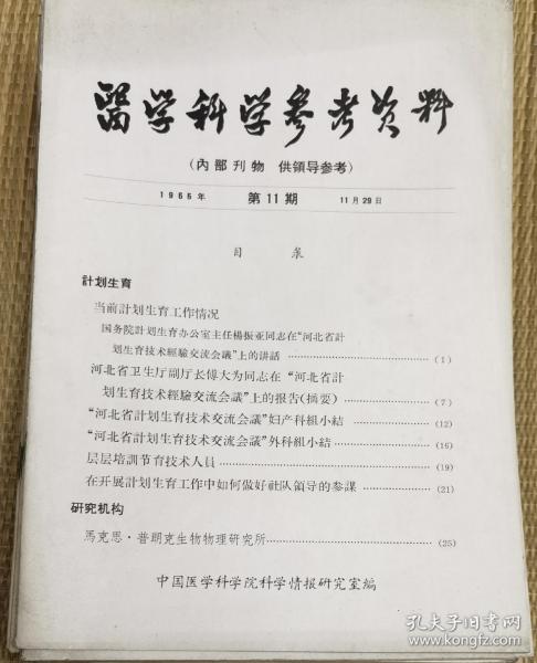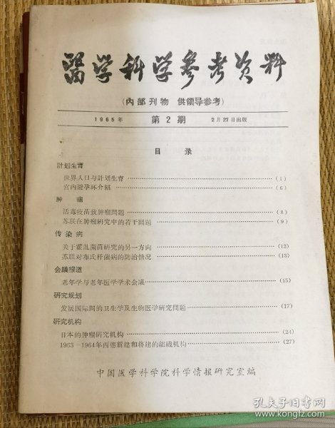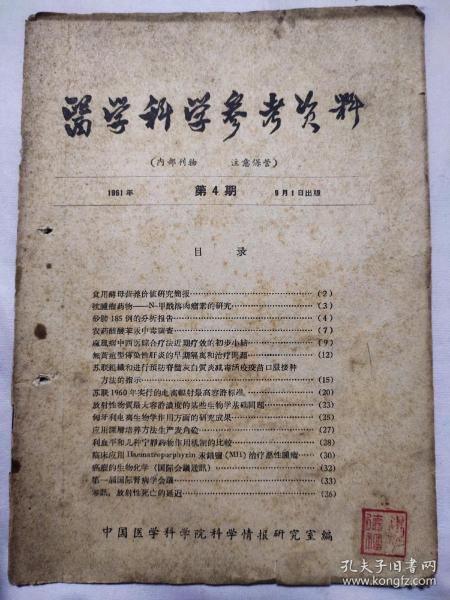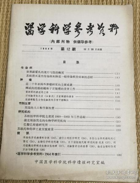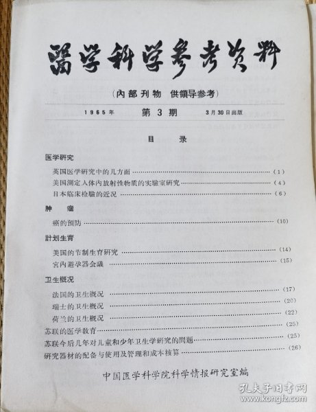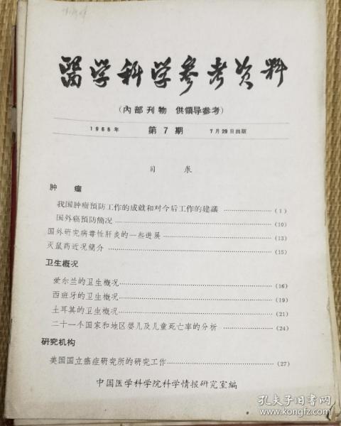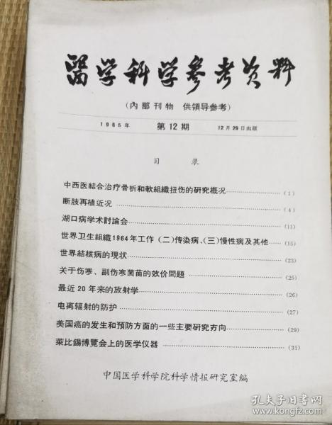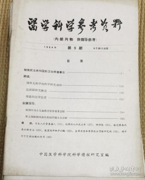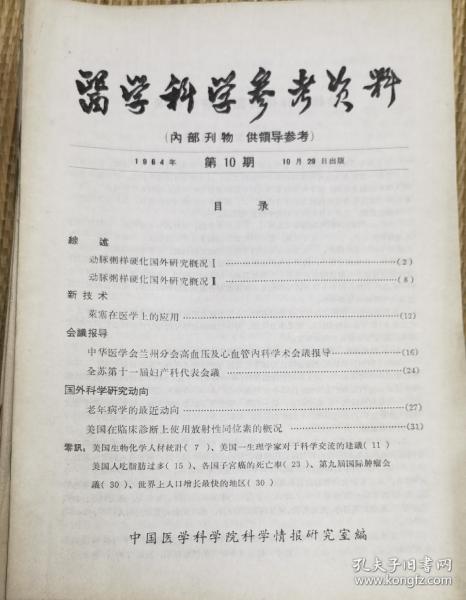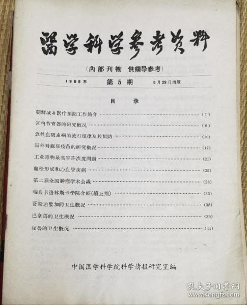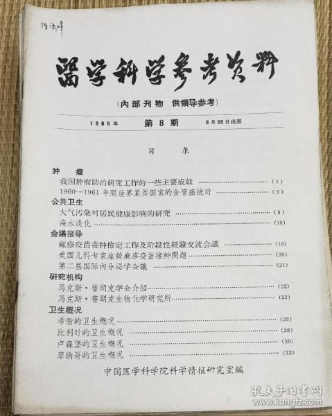 中国医学科学院情报组编辑