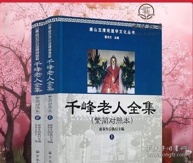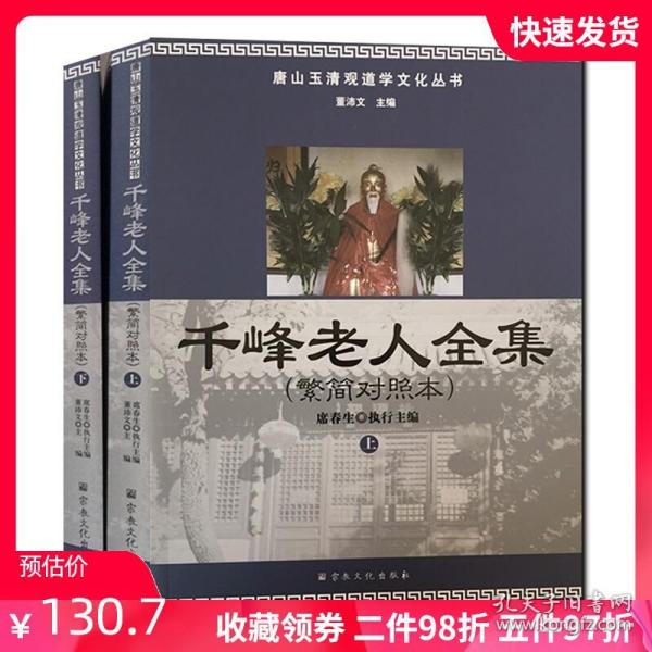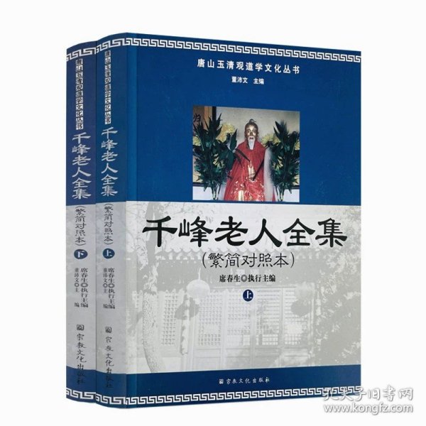 《千峰老人全集(繁简对照本 套装上下册)》是2011年由宗教文化出版社公开出版发行的《千峰老人全集》影印本的繁简对照本。为更好弘扬道家核心文化,普及道家性命双修金丹大道的理论及常识,作者董沛文在《千峰老人全集》影印本基础上,整理并补充了其简体文字资料作为对照本,以供不同年龄、不同需求的读者研究阅读。