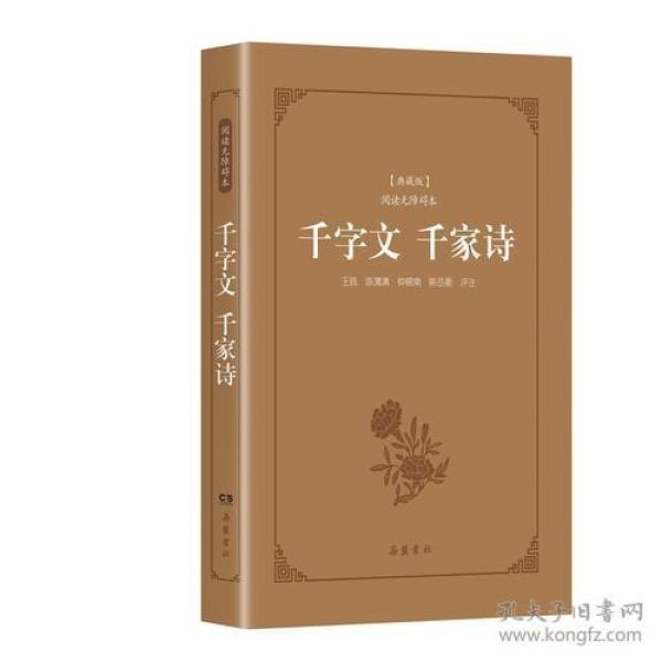 《千字文》由南北朝时期梁朝散骑侍郎、给事中周兴嗣编纂,是由一千个汉字组成的韵文,每四字为一句,共二百五十句。全文对仗工整,条例清晰,易诵易读,对中国影响*的儿童启蒙读物。《千家诗》是由宋代谢枋得《重定千家诗》和明代王相所选《五言千家诗》合并而成,是具有启蒙性质的诗歌选本。全书所选诗歌多为唐宋名家名篇,题材多样,易懂易学。书名虽称“千家“,实际上只录有122家,其中唐代65家,宋