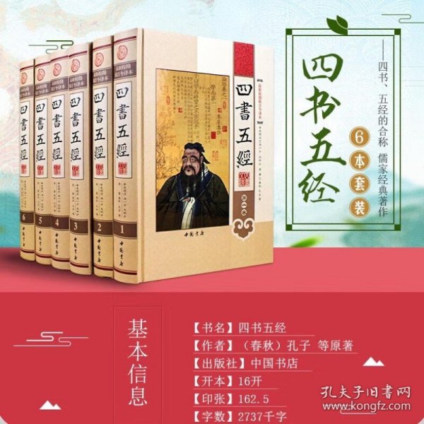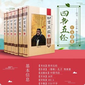 四书五经(影印版 上中下)四书—应该说,凡是对中国传统文化稍有了解的人,都知道《四书》。它是《大学》、《中庸》、《论语》《孟子》这四部著作的总称。据称它们分别出于早期儒家的四位代表性人物曾参、子思、孔子、孟子,所以称为《四子书》(也称《四子》),简称为《四书》。南宋光宗绍熙远年(1190年),当时著名理学家朱熹在福建漳州将《大学》、《论语》、《孟子》、《中庸》汇集到一起,作为一套经书刊刻问世.。