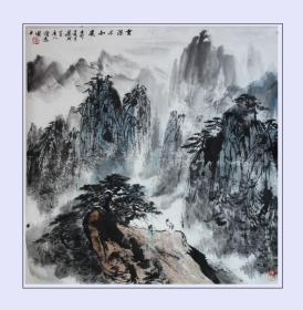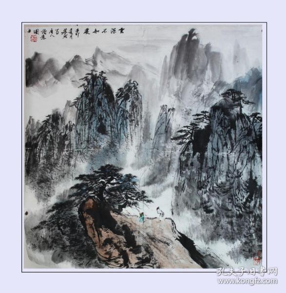 作者 朱斌国画作品真迹,现为安徽省美协会员,省青年美协理事,合肥市美协理事,合肥市青年美协副主席,上海.当代水墨艺术研究院副院长,艺委会委员.斗方《云深不知处》。
