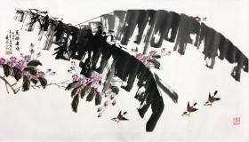 作者 王道良 花鸟136×68托片王道良,1936年12月生,汉族,上海市人,中国美术家协会会员。安徽合肥市政协西市区委员会第二届、三届、四届常委,市美术家协会理事。早年肄业于上海美专,师承岭南派大师黄幻吾先生