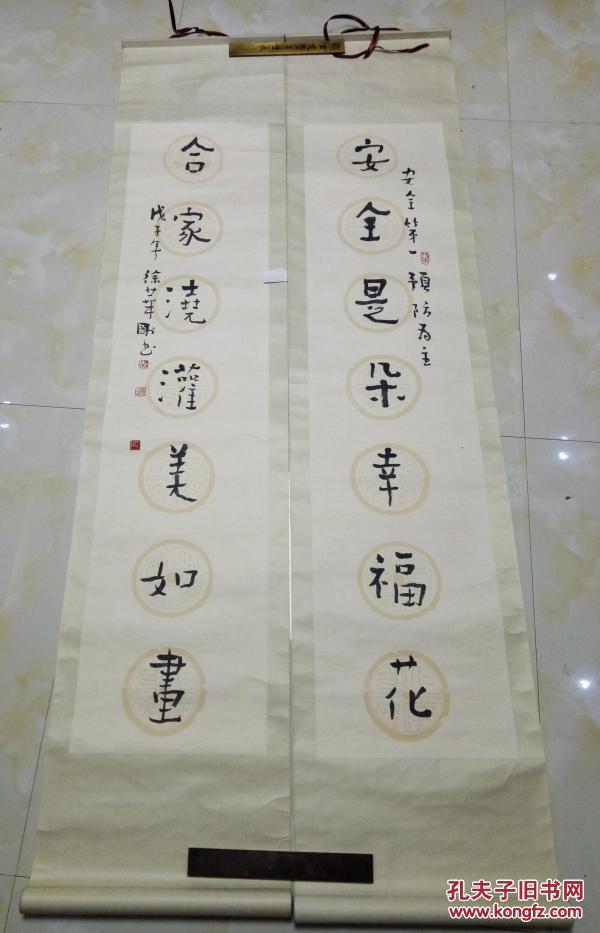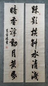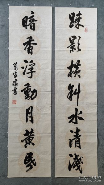 作者 B40976号书法对联 疏影横斜水清浅 暗香浮动月黄昏 135×34cm×2条 作者:葛家让