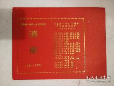 出版社 安溪第一中学七十周年校庆请柬1924-1994