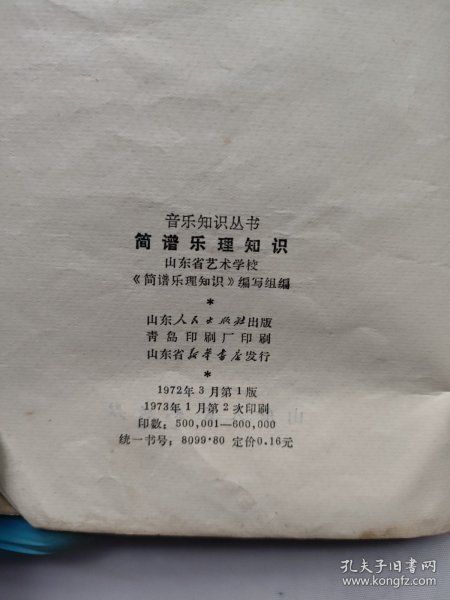山东省艺术学校《简谱乐理知识》 编写 / 山东人民出版社 / 1972-03 / 平装
