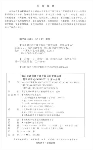 南水北调中线干线工程运行管理制度标准丛书(管理标准篇) 2I15b 版次更新不同步 以实际收到书为准