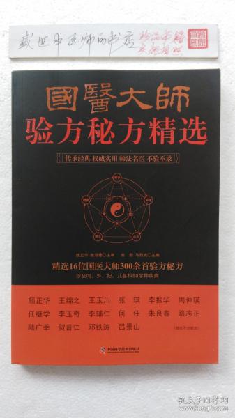 全新正版,请看图片。本书共收录近二十位国医大师300余首验方秘方,均系大师前贤从医数十年之实践亲得,弥足珍贵。内容广博,涉及80余种疾病,并按常见病、内科病、外科病、妇科病、儿科病、男科病、老年病、流行性传染病、癌症和损容性疾病等分类编排。每方包括处方、功效主治、用法、辨证加减、方解和注意事项等内容。其用药精练,配伍谨严,疗效卓著。