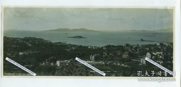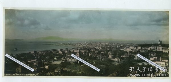 出版社 日本东京吉田商店出版1940 观光纪念写真帖 原色彩色图片加解说32张青岛名胜人文风俗等老老街老建筑,贵妇人母子骑老驴出租车,赶车人,居民穿戴打扮,德国老街道老房子,马路交通工,
