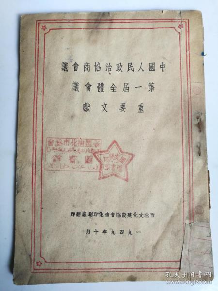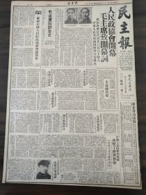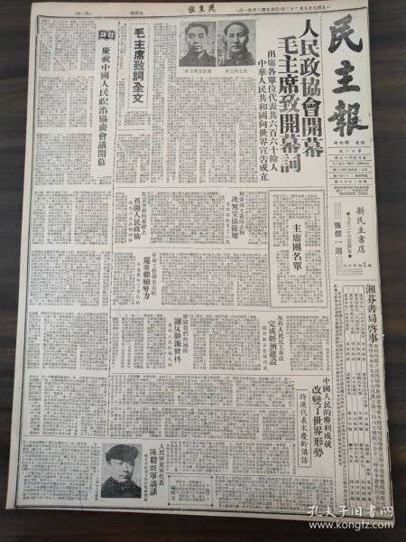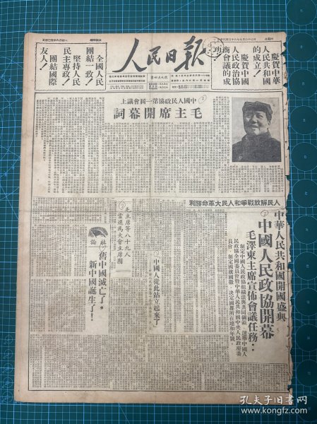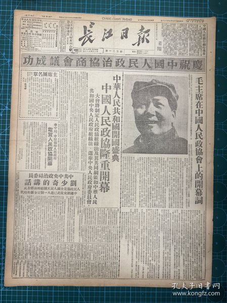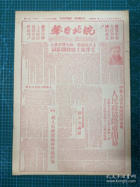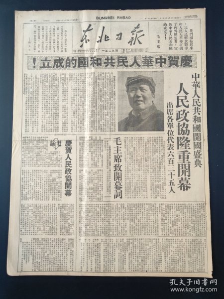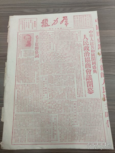 出版社 中华人民共和国开国盛典人民政协庄严揭幕毛主席致开幕词阐述会议任务。头版