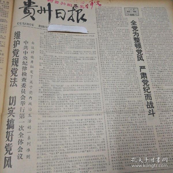 出版社 中共中央纪律检查委员会举行第1次全体会议切实搞好党风造成生动活泼政治局面。头版