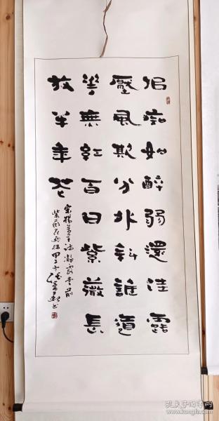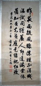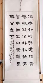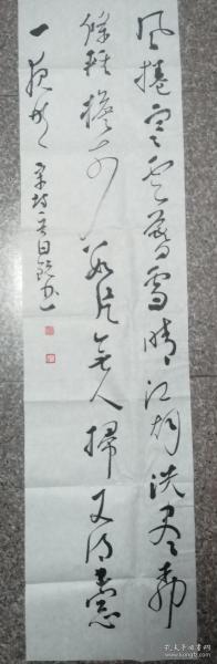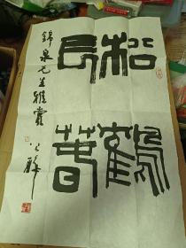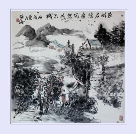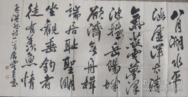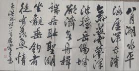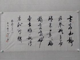 作者 李佩俊书法国画作品真迹,现任淮南市文学艺术交流家协会主席、中国艺术促进会顾问、中国书法家协会会员、安徽省书法家协会会员、友声书社社员、淮南画院特聘书画家,河南省当代艺术馆签约艺术家。斗方《我醉君复乐,陶然共忘机》 。