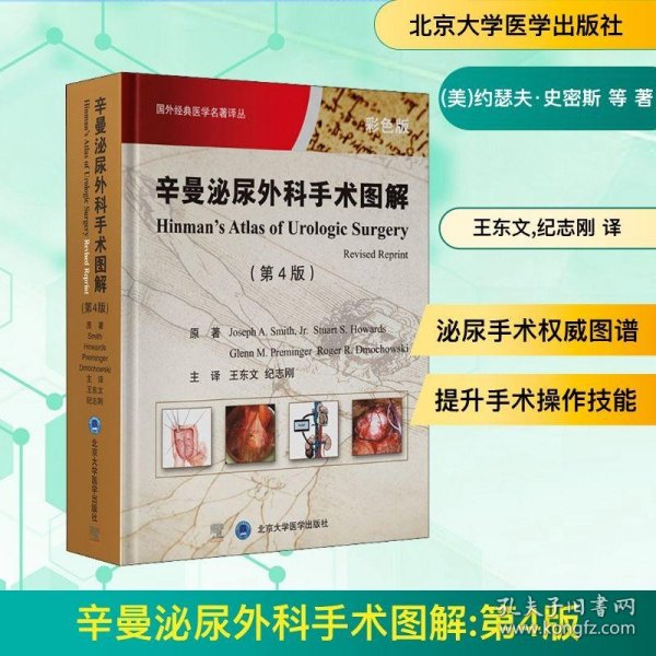 《辛曼泌尿外科手术图谱》是一部专为泌尿外科医生提供的全面手术图解与手术技能指导专业著作,是目前全球最具影响力的泌尿外科专著,被众多泌尿外科医师誉为学科”圣经”。最新版本为第4版。内容含有详尽的彩色图例图解(超过1200幅图),高清临床影像照片,泌尿外科顶尖专家的手术实时影像记录及评注,详细的手术技巧指导等。图例和讲解全面覆盖泌尿外科医师会遇到的几乎所有手术环节。通过图例、照片、