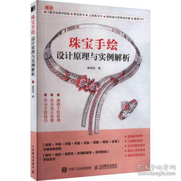 艺术设计 珠宝设计手绘表现技法,首饰设计实例效果图,学习手绘技巧培养设计思维,赠13集手绘教学+常见宝石金属色卡+上色练习卡+PPT,提高手绘能力、专业的珠宝知识和创造力 新华书店全新正版书籍