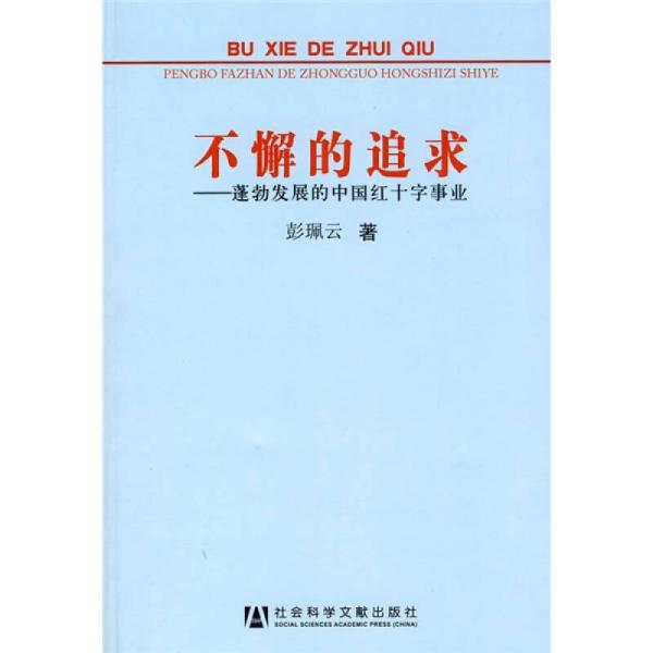 《不懈的追求:蓬勃发展的中国红十字事业》选编了彭佩云同志在担任中国红十字会会长的十年间所做的讲话、报告和文章。这些讲话、报告、批示反映了我国红十字事业发展的历程,总结了做好新时期红十字会工作的基本经验,对于指导各级红十字会干部进一步做好红十字会工作具有重要意义。,全书分为四个部分,包括在中国红十字会理事会和全国工作会议上的讲话,关于红十字会专门工作的讲话,在地方红十字会的讲话等
