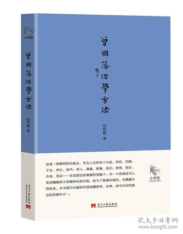 《小书馆:曾国藩治学方法》为“小书馆”丛书之一,绝版多年。,这是一部民国人对曾国藩的解读,曾国藩女儿曾纪芬推崇备至,亲自作序推荐。它堪称一部精神的冶炼志,有关人生的各个方面,居官、同僚、子女、养生、读书、观人、器量、骄奢、淡泊、挫辱、坚忍,自省、笃实……在民国史家凝重的笔触下,对一个普通读书人变成巍峨君子的精神冶炼历程,给与了淋漓尽致的、有震撼力的叙述。