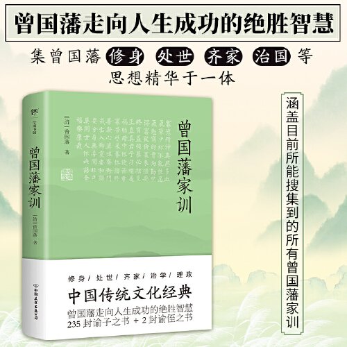 《曾国藩家训》是曾国藩写给两个儿子的书信汇编,也是其所有著作中影响大、传播广的作品,初刻于光绪五年(1879)。该书核心内容是对子女的学业教育和家风建设,涉及修身、治学、持家等诸多方面,语言醇厚,感情真挚。上至经邦纬国、济世救民之道的阐发,中及进德修业、读书求学的方法指导,下至人际琐事处理和家庭生计的经验建议,事无巨细,谆谆教导,可谓凝聚了曾国藩一生处世应变的哲学体悟和思想精髓