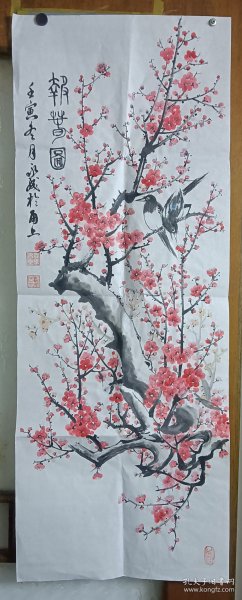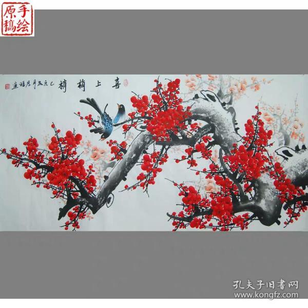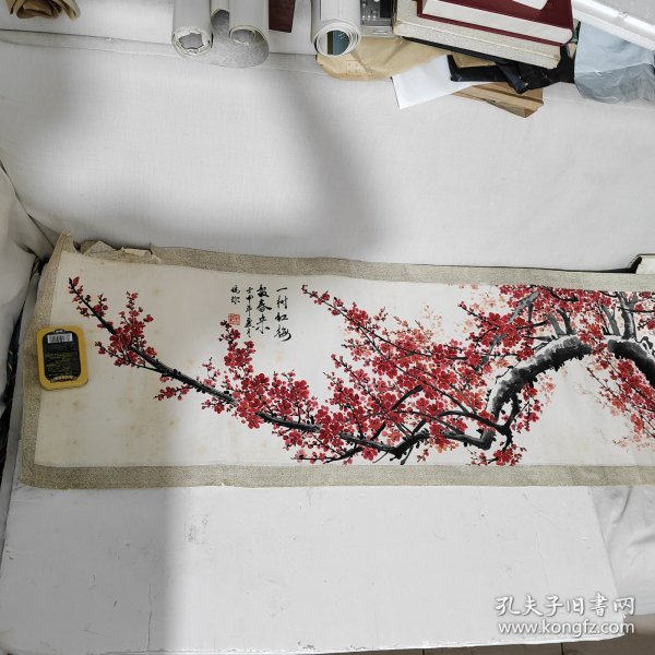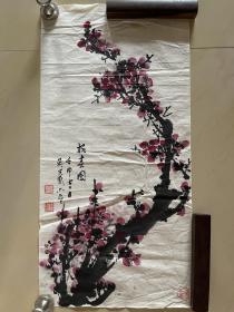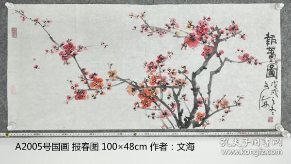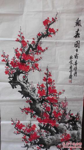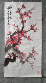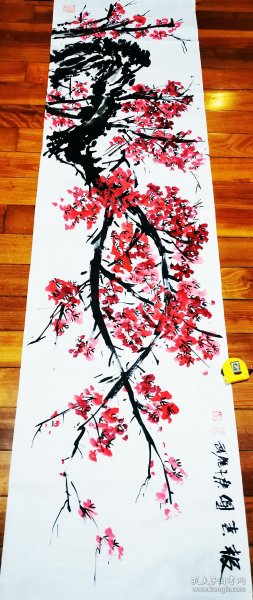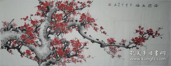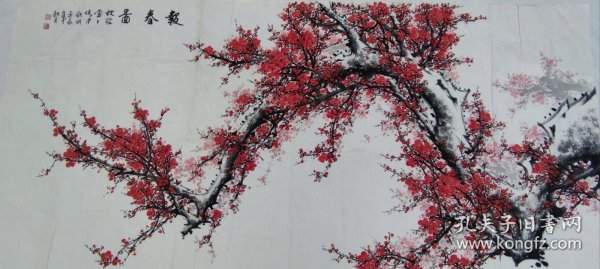 作者 B41212号国画 写意花卉梅花红梅 报春 63×32cm 作者:长亭