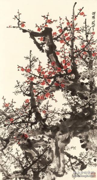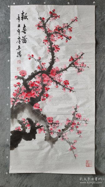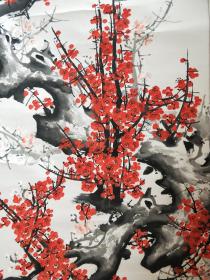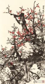 作者 B40316号国画 写意花卉梅花红梅 报春 99×50cm 作者:李平胜