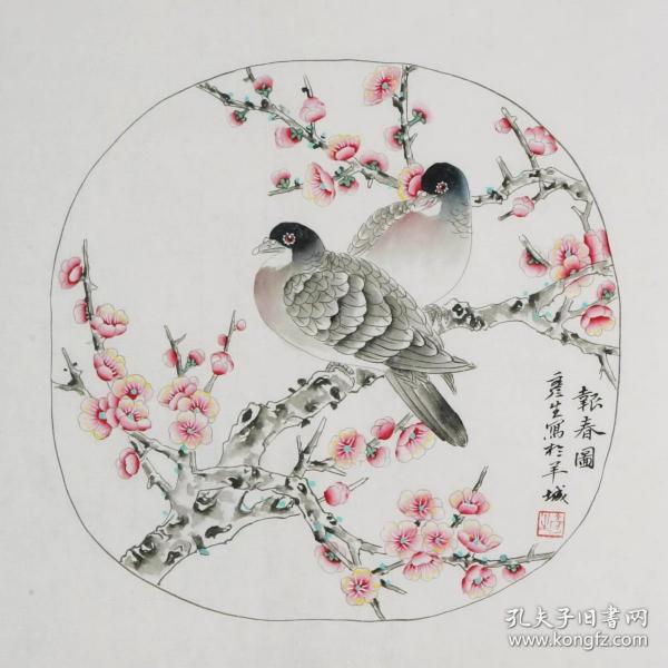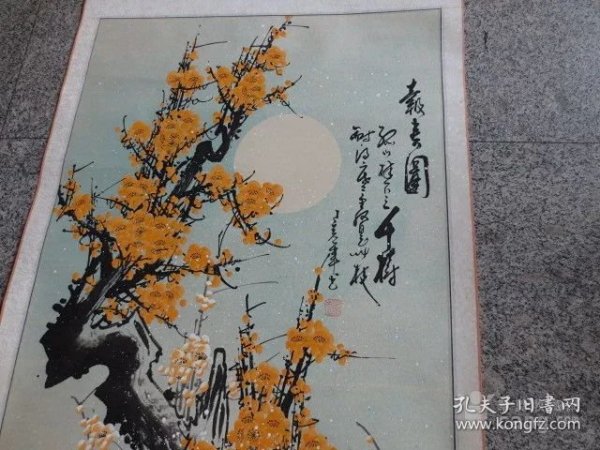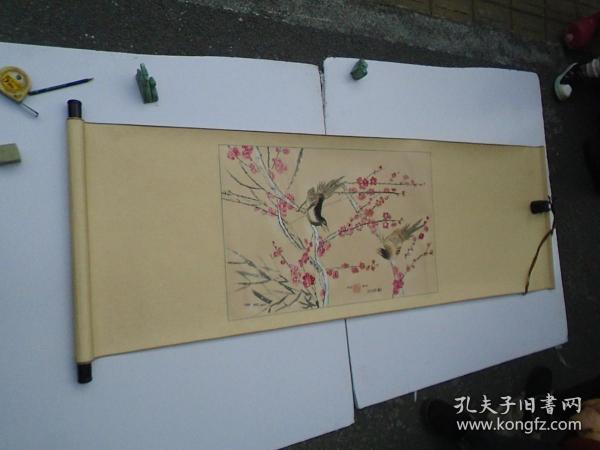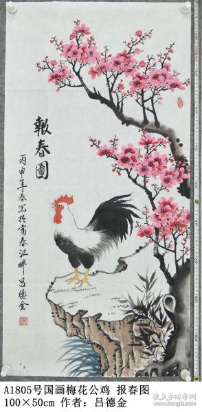 作者 A1805号国画梅花公鸡 报春 100×50cm 作者:吕德金