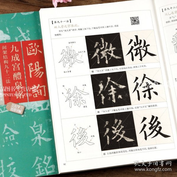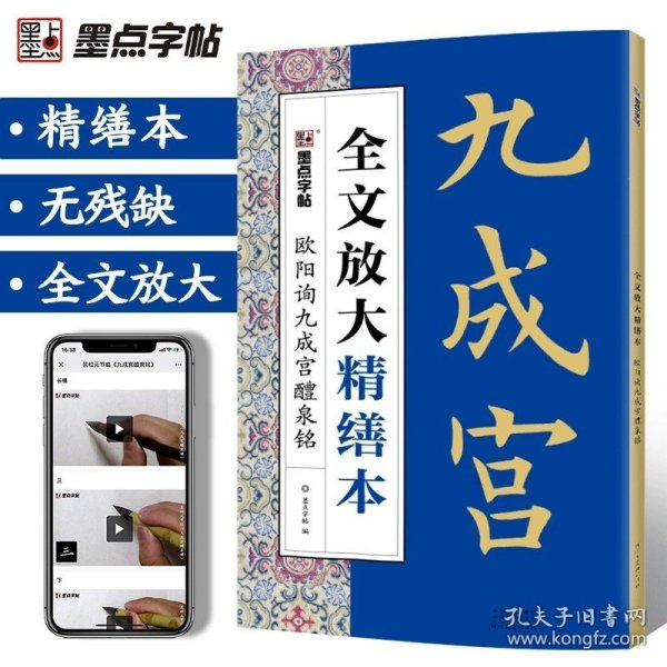 《九成宫醴泉铭》(宋拓李祺本?姚孟起临本?杨华临本)和《九成宫醴泉铭》(宋拓李祺本?邓散木临本?杨华临本)则是将宋拓李祺本中的所有字进行逐个演示,(以附加视频的形式对书中列举的字进行逐个示范),生动形象,不仅具有别开生面的展现效果,更有比以往书籍更强的直观性与实用性。可以说该书从宏观、微观的不同角度对《九成宫醴泉铭》进行了细致的剖析,极大地提高了该书的附加值,相信能惠及读者。