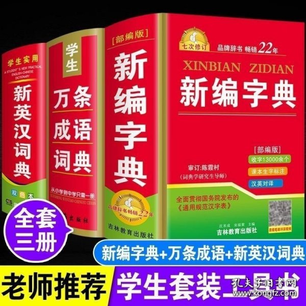 新编英汉小词典(双色版)、袖珍汉语词典、新编学生字典(全新)3本