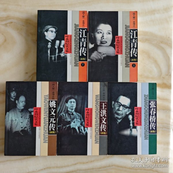 叶永烈纪实文集,2000年一版一印,全五册,之一江青传上下、之二张春桥传、之三王洪文传、之四姚文元传