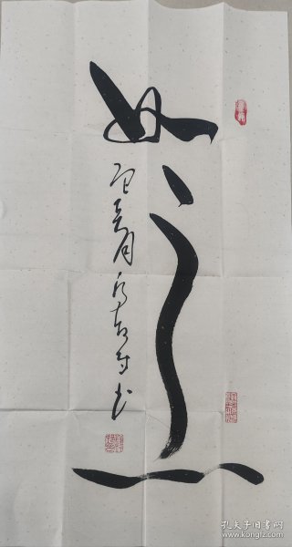 作者 乔牧村,欧阳中石亲传弟子书法作品《如意》白色宣纸软片尺寸90*49手绘真迹保真