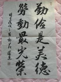 作者 刘当平,河南项城人书法作品《舍得》仿古宣纸软片尺寸68*34手绘真迹