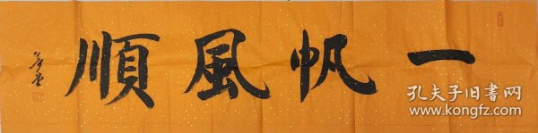 作者 当代名家书协会员吴梦堂书法作品《一帆风顺》,仿古宣纸,四尺对开尺寸138*34低价放漏
