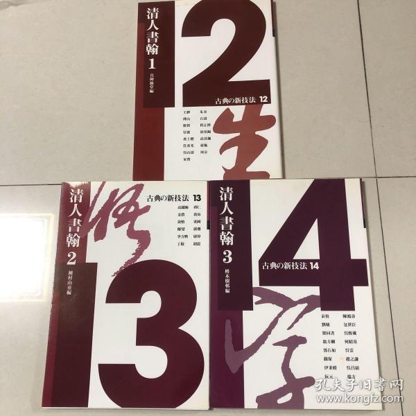 作者 文征明、祝枝山、董其昌、陈继儒、张瑞图、倪元璐、黄道周、王铎、陈洪绶、傅山、朱彝尊、金农 郑板桥、刘墉、邓石如、翁方纲、成亲王、包世臣、吴让之、何绍基、赵之谦、徐三庚、吴大澂、俞樾、杨守敬、吴昌硕、康有为 等书法;村上三岛 等编