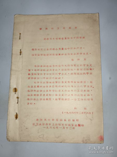 出版社 红代会清华大学井冈山兵团翻印