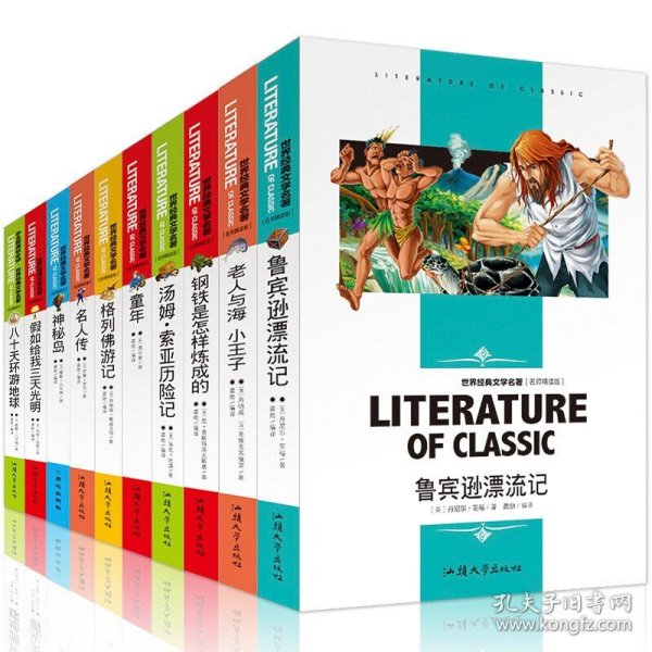 我的大学 安徒生生童话 八十天环游世界 傲慢与偏见 格林童话 老人与海 简爱 鲁宾逊漂流记 木偶奇遇记 童年 钢铁是怎样炼成的 格列佛游记 福尔摩斯探案集 飘 父与子