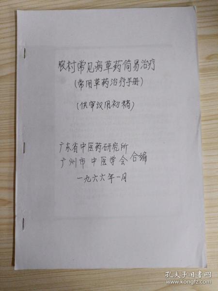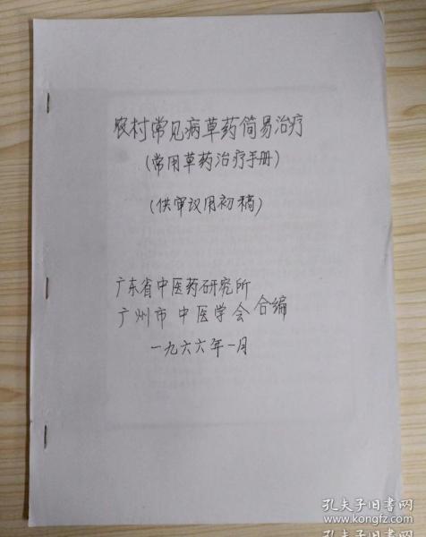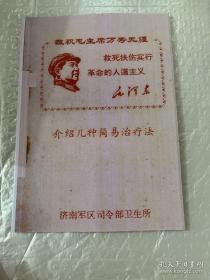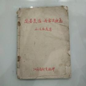 会上交流了一些验方,单方、土法,这些方剂既简便,又经济,能治好一些常见疾病。为了能发挥更大的作用,将这些简易治疗经验,作了初步整理汇编成册,供同志们在防病治病工作中参考。