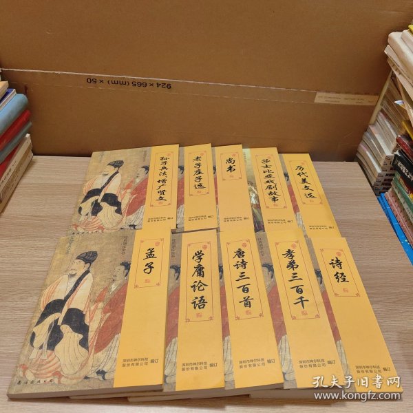 有黄斑,品相如图在意勿拍!!诗经 孝地三百千 老子庄子选 孟子 尚书 唐诗三百首 历代美文选 学庸论语 莎士比亚戏剧故事