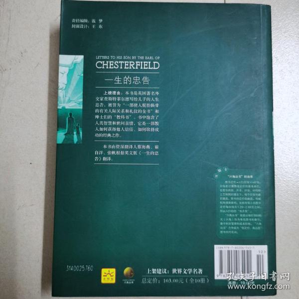 本书是一部教人如何富有教养,善于在社会上处世以获得成就的作品,是一本父亲写给儿子的书信集,涉及学习、礼仪、处世等话题,这些家信影响了一代又一代的年轻读者,激励他们前行。 本书充满了作者宝贵的人生经验和智慧,读者可从中懂得许多关于社会、人性、人际关系和领导能力的道理,得到有益的启示。书中有不少精辟的语言,教人如何珍惜光阴,积极上进,树立良好的美德;如何恰当地对待享乐,树立正确的