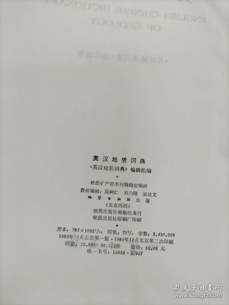 出版社 英汉地质词典 作者: : 地质出版社