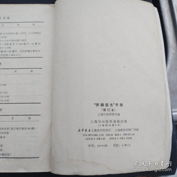 上海市中医学院《赤脚医生手册》编写组 / 上海市出版革命出版 / 1970-09 / 软精装
