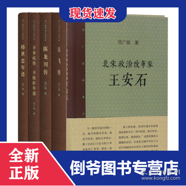 《岳飞传》《北宋政治改革家王安石》《辛弃疾传辛稼轩年谱》《韩世忠年谱》《陈龙川传》